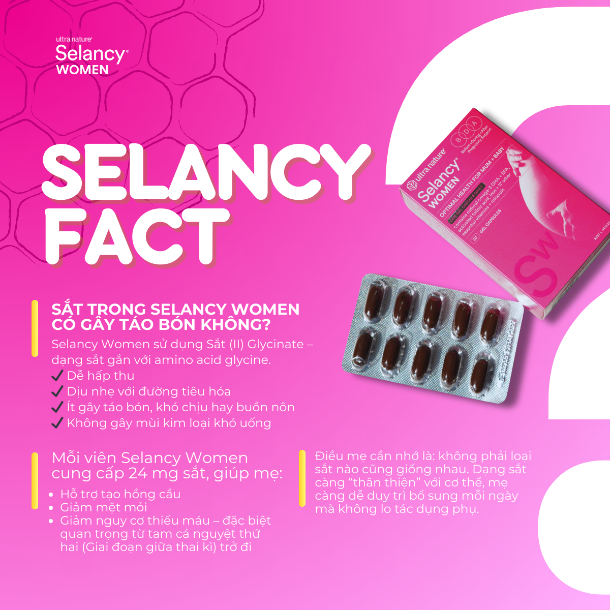 Bổ sung sắt dịu nhẹ, hạn chế táo bón, giảm nguy cơ thiếu máu thai kỳ.